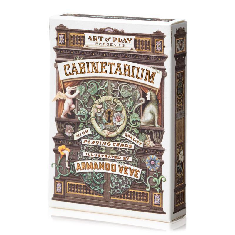 The cards of the Cabinetarium are housed in a marvelous conceptual cabinet of magnificent detail, intricately embossed and adorned with gold foil. Each deck is carefully packaged by hand.