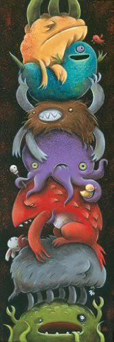 This is a 187 piece wooden jigsaw puzzle of a sympathetic totem of monsters, painted by Justin Hillgrove. Recommended for ages 12-and-up. The puzzle pieces were designed by Maria Berg, and are themed to this image. This puzzle has a straight edge and is easier than average. The puzzle is laser-cut from 1/4" wood, and made in the USA. Packaged in a small cardboard box with magnetic clasp.