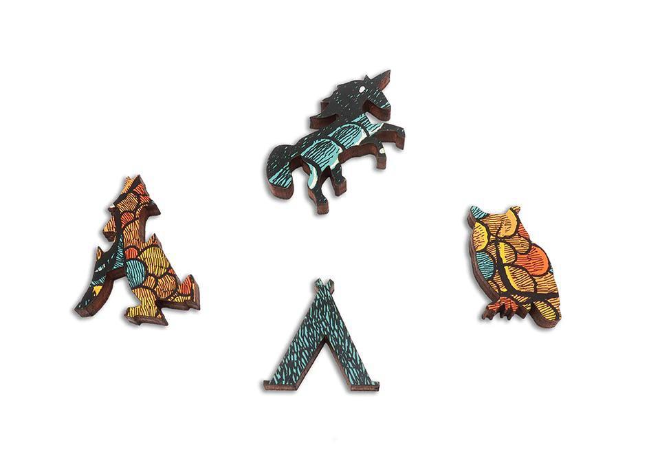 The puzzle is especially challenging because while all the baying-wolf pieces are unique overall, some pieces can be fit into the wrong place if you don't pay attention.