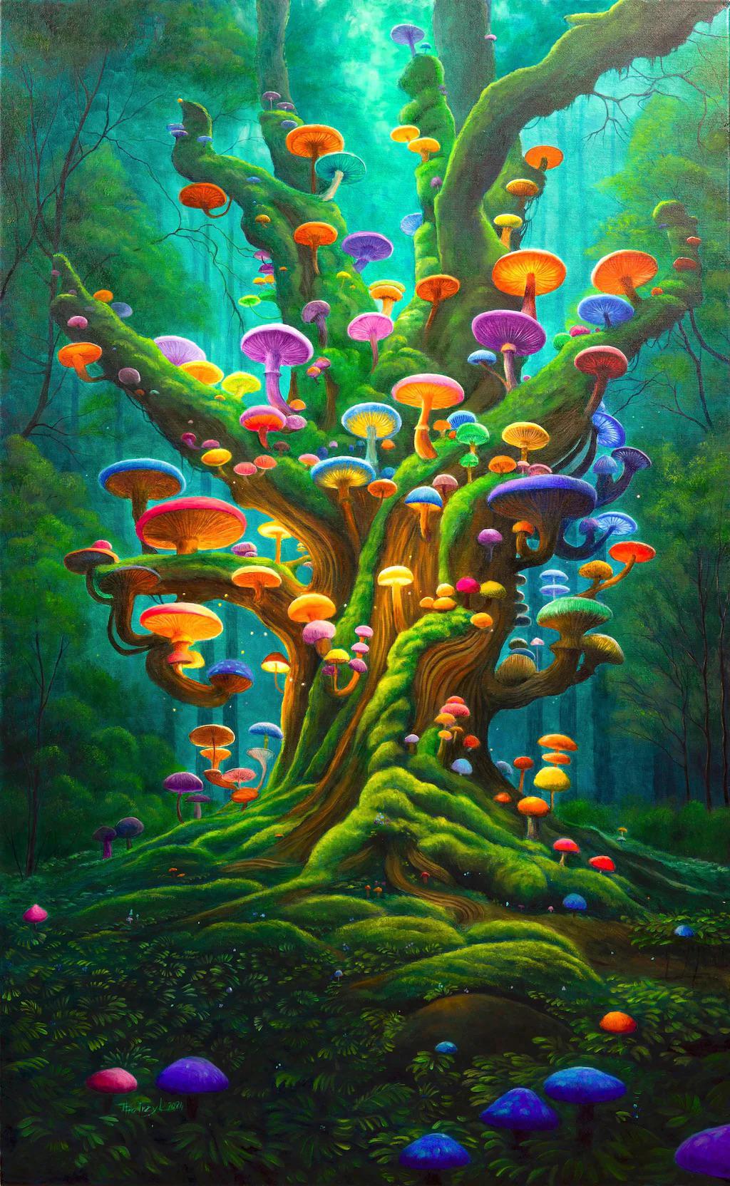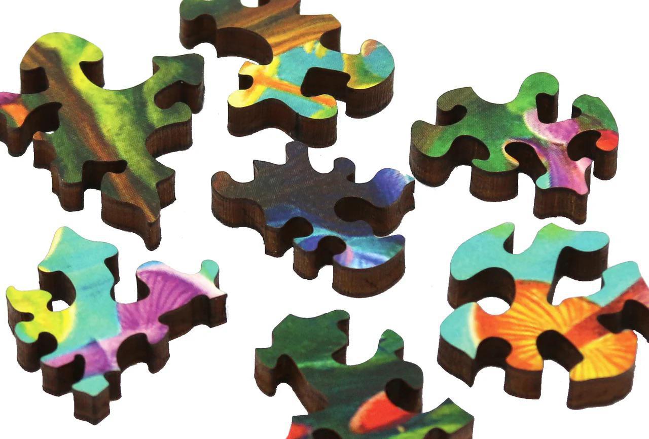 This is a challenging 286 piece wooden jigsaw puzzle of 'Mushroom Glow' by Tomasz Pietrzyk.