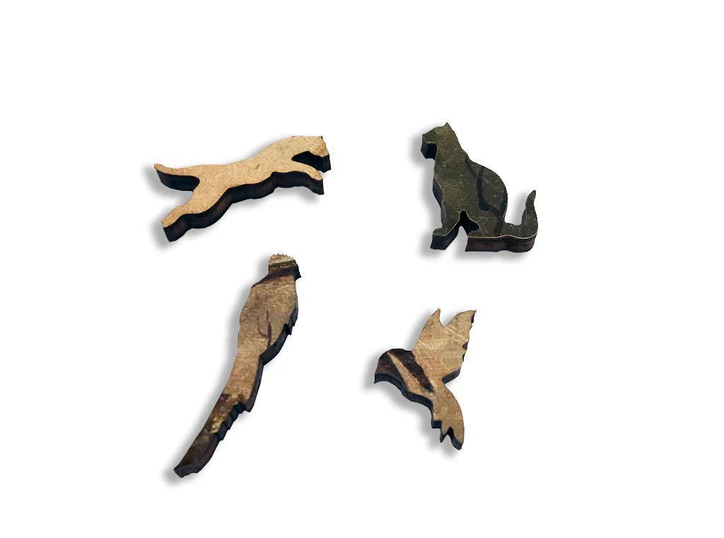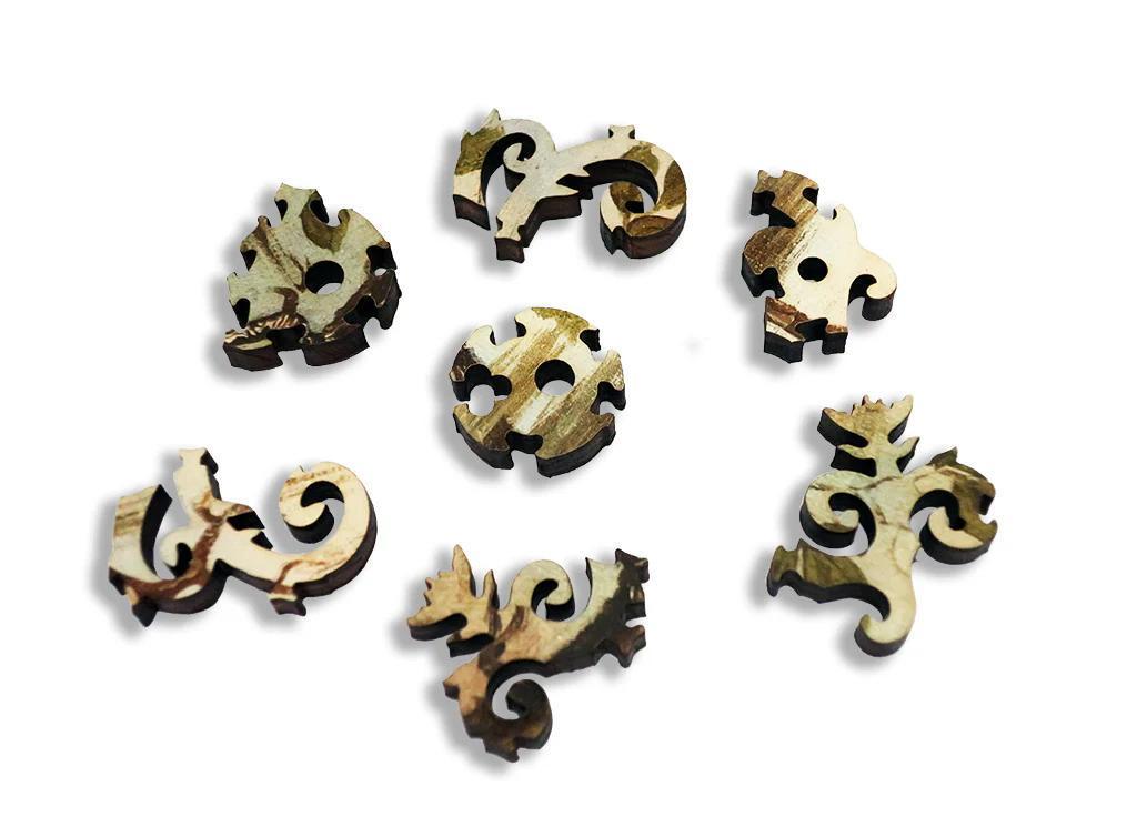 This is a fancy 289 piece wooden jigsaw puzzle of Martin Heade's "Two Hummingbirds at Nest." The 19th century American artist took multiple trips to the tropics, and this piece depicting this pair of hummingbirds is from one such journey. The complicated design by David Figueiras includes Costa Rica themed whimsies and a beautiful, irregular edge with many drop-outs. NOTE: The irregular edge is not shown in the image on the box!